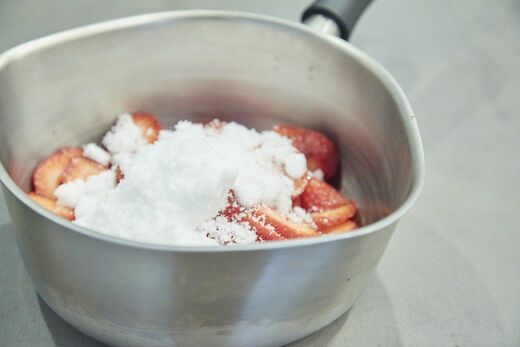 だいたい、いちごの3分の1量の砂糖を加えます(写真:吉澤健太)