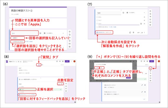 (7) 選択肢が記入できたら、次に自動採点を設定するために「解答集を作成」をクリックする。