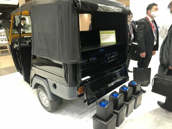 電動3輪車、電動リキシャ(インドでの小型タクシー)など電動車に使うほか、このモバイルパワーパックeを2つ利用するモバイルバッテリー、4つ利用する家庭用定置型バッテリーステーションなど、さまざまな用途に応用するという。