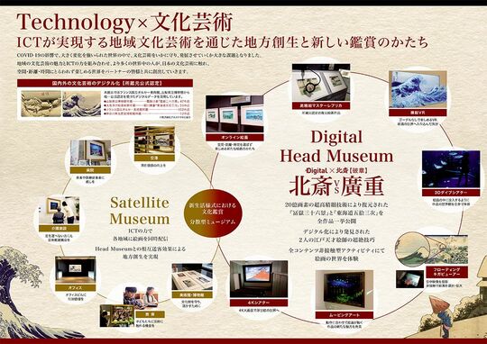 実際、NTT東日本が2019年に実施した体験型美術展「Digital×北斎【序章】」で『冨嶽三十六景』のデジタル作品を観覧した来訪者が、所蔵元の山梨県立博物館に足を運んだ事例があるのだ。この出来事に突き動かされる形で、同博物館が急きょ実物の展示をしたという実例もあり、デジタルアートを起点に地域活性化の循環が生まれる効果は実証済みだといえる。