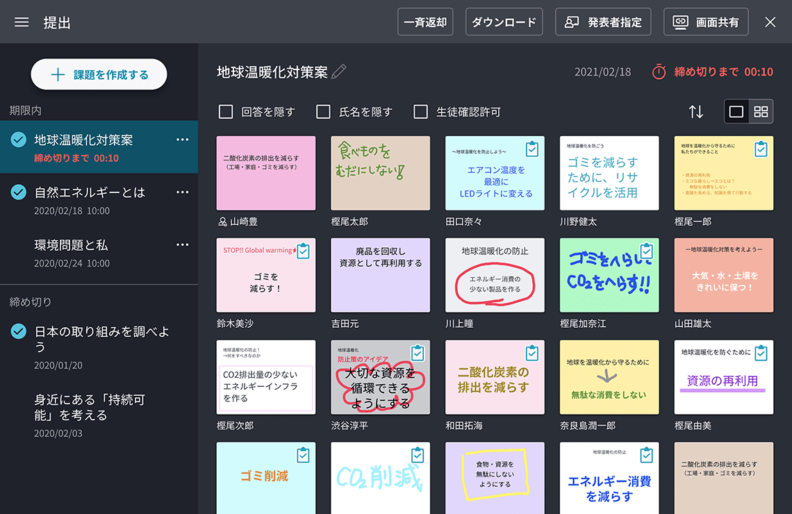 問題に対する解答を教員と生徒が互いに共有できるため、教員からフィードバックを送ったり、生徒同士が意見を出し合って議論するなど、学び方の幅が広がる。