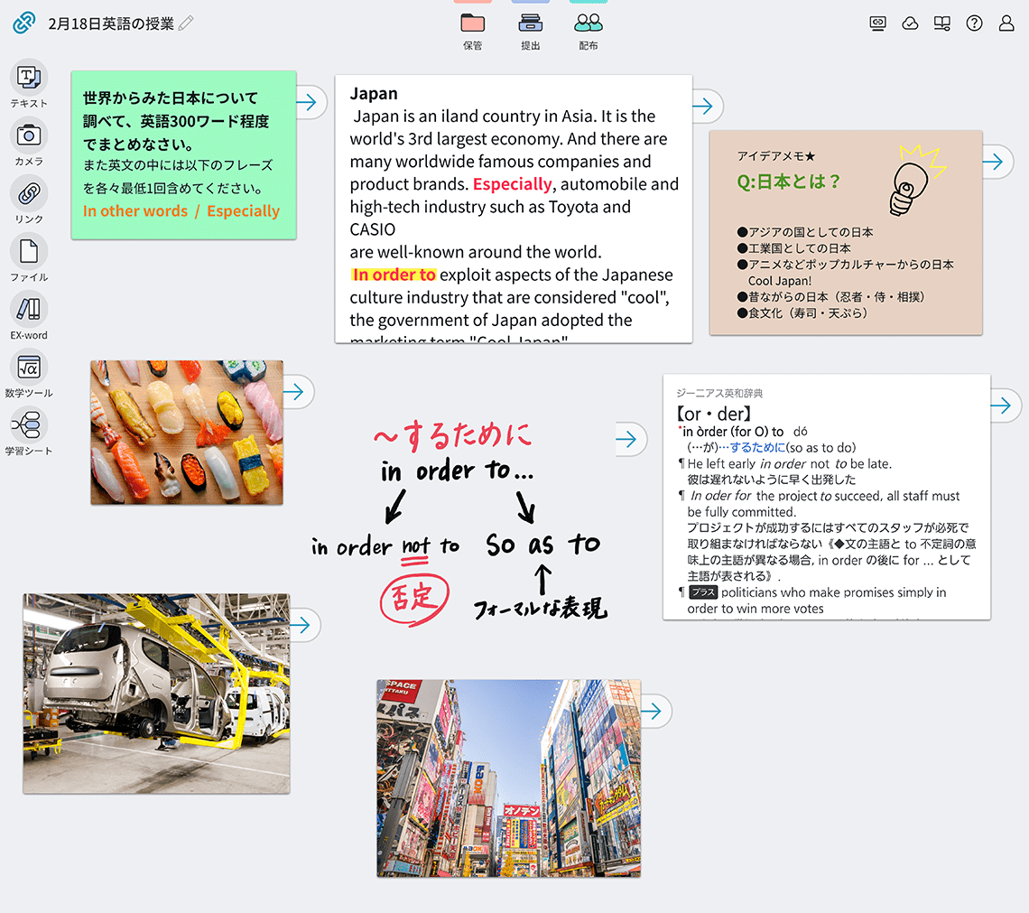 「アイデア会議で模造紙に付箋でアイデアをどんどん貼っていくようなイメージです。というのも、今の教育で求められるのはディスカッションスキルや情報をまとめるなどの情報活用能力。そのため、単にテキストを書き込めるだけでなく、さまざまなデジタルコンテンツを呼び出し、付箋として挿入できるようにしました」