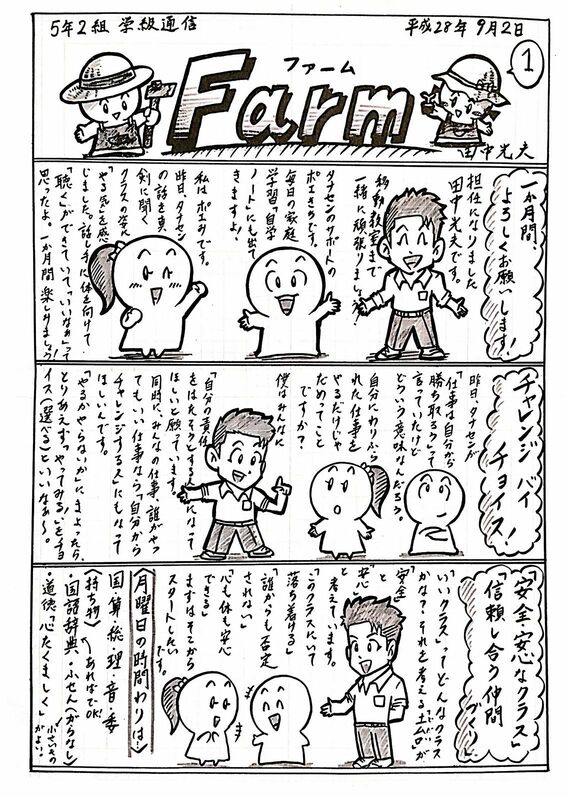 はい。保護者からいつも「楽しく読んでいます」「夕飯のときに学級通信のネタで盛り上がっています」といった声をいただきます。