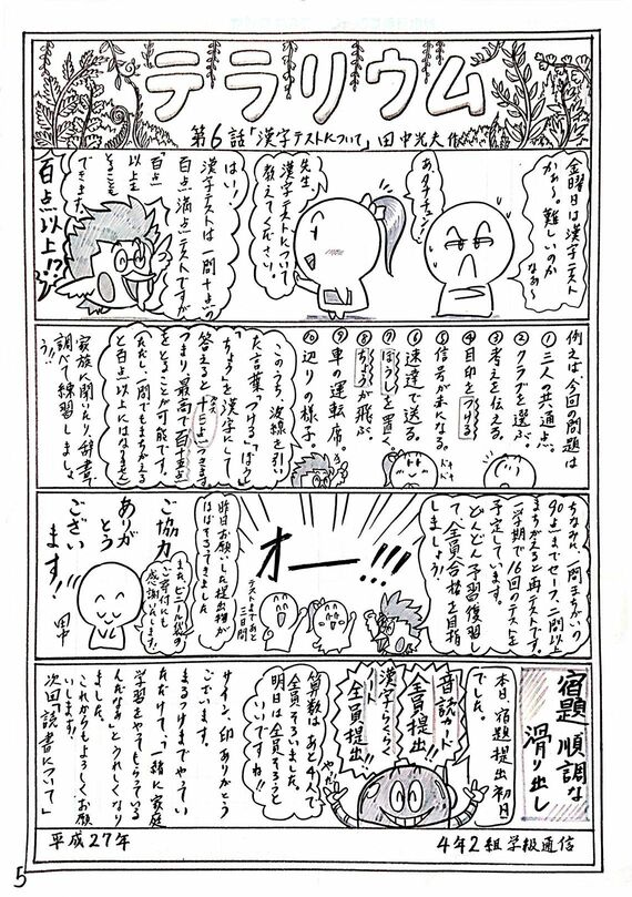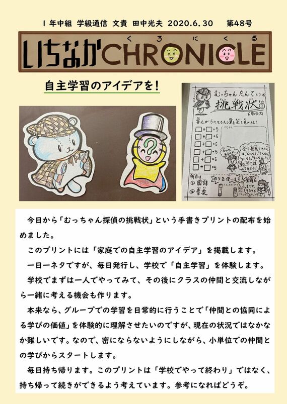僕の場合、学級通信を書く過程が自身の教育活動の振り返りになっている側面も大きいので、もう書かないという選択肢はありません。教員同士で学級通信をベースに自分の取り組みを紹介するなど、学び合うツールとしてもおすすめですよ。ただ、書くことが目的になりほかのことがおざなりになっては本末転倒。1週間のダイジェストを金曜日に発行するなど、無理のない範囲で気楽にやるといいと思います。