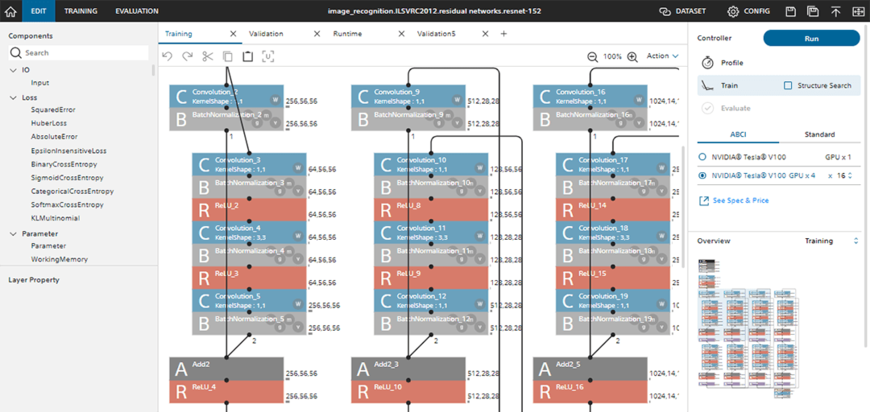 「Neural Network Console」は、AI構築に必要なディープラーニングの開発基盤を提供する。ドラッグ&ドロップで簡単に高度なニューラルネットワークを構築でき、画像認識・解析による製品検査などに活用されている。