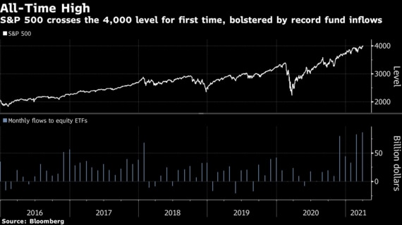 米株式市場で強気相場が続いている。1日はS&P500種株価指数が過去最高値を更新し、初めて4000を上回って終了した。今年の米株市場はテクノロジー銘柄が売られるとエネルギー株と金融株が買われるなど、上げ相場のけん引役が次々と入れ替わっている。