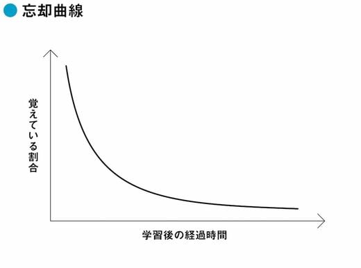 心理学者はこれを「忘却曲線」と呼ぶ。一度覚えた情報が忘れられる割合を示す数式だ。