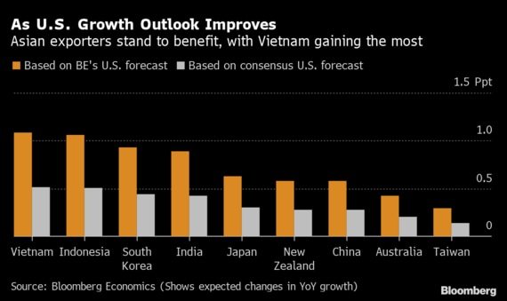 大規模な刺激策と累積需要に後押しされた米景気拡大は、アジアの輸出業者にとって追い風となり、その最大の恩恵を受けるのはベトナムだと、ブルームバーグ・エコノミクス(BE)は分析した。