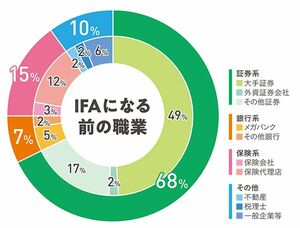 掲載したグラフは、IFAの総合コンサルティング業務を行うアドバイザーナビが2021年1月に行ったWebアンケートを基に作成したものだ。アドバイザーナビは、金融機関勤務者のIFAへの転職支援や、IFAを活用して資産運用・管理を行いたいと思っている富裕層とIFAのマッチングサービスを展開している会社である。白井氏や大石氏など、大手証券出身者やプライベートバンク出身者が同社を通じ続々とIFAに転職をしている。同社代表取締役の平行秀氏は野村證券出身で、IFAの経験もあり、IFA業界への知見が高い。また、同社は多くの非公開求人や、独占求人を持っていることも強みとしている。
