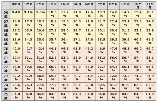 繰り下げ受給開始の時期と増額率