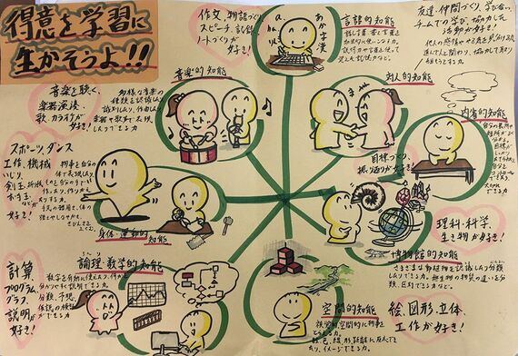 そこで僕は、ハーバード大学のハワード・ガードナー教授が提唱する「マルチプルインテリジェンス理論」(MI理論)を取り入れています。これは「知能は単一ではなく複数存在し、誰もが8つの知能のうち何らかを有している。長所やプロフィルがそれぞれ異なるのと同様、人それぞれの知能の強弱が存在する」と考える理論です。