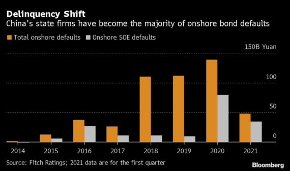 ムーディーズ・インベスターズ・サービスのアナリストらは今週のリポートで、ここ1年半にわたる政府の政策は「一部の国有企業がデフォルト(債務不履行)、あるいは債務再編を通じて債権者に損失を負わせることを容認する公算がますます大きくなっていることを示唆している」と分析。