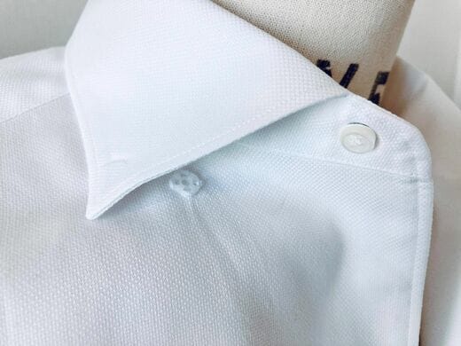そういう意味では、生地感や前立てのみならず、ボタンダウンからの脱却も選択肢の1つかもしれません。クライアントのビジネスマンから「カジュアルに見えるボタンダウンは苦手!」という声もよく耳にします。