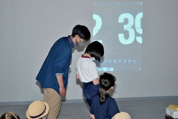 約束の時間に戻ってきた子どもたち。ある子は自ら制作したアニメ作品を、ある子は友達同士で学校を舞台にした学園ドラマ風の作品を、みんなの前で順番に発表し合った。編集の時間が足りず同じような映像が延々と繰り返される作品にも、大人から見たら不可解に思われるような作品にも、「よい」「悪い」の評価はせず、拍手を送る。