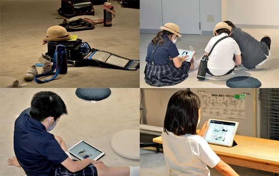 先生の言葉を聞いた瞬間、子どもたちはiPad片手に教室を飛び出し、三々五々校内のさまざまな場所に散らばっていった。