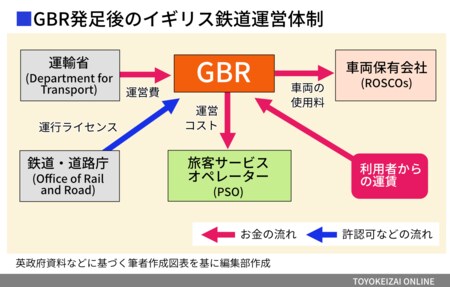PSOは引き続き民間企業からの入札で決定するが、現在のTOCとは異なり、運賃やダイヤの設定などはGBRが行い、旅客運賃などの収入もすべてGBRが吸い上げる。その一方で、運営に必要なあらゆるコストは運行サービスを提供した対価としてPSOに支払われる仕組みとなるため、企業側のリスクは大幅に軽減される。このため、政府には「民間企業の鉄道事業への参入のハードルが圧倒的に下がる」という期待もある。
