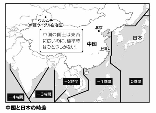 中国の国土面積は約960万平方キロで世界4位。最西端の新疆ウイグル自治区から最東端の黒龍江省までの距離は約5200キロ、経度差は約60度もあるが、時差を設けず、すべての地域でたったひとつの標準時を使っているのである。