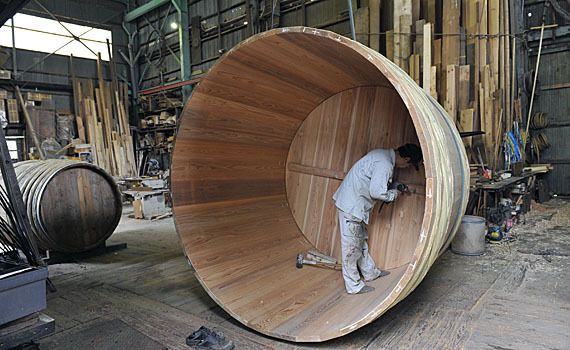 そもそも樽屋さんや桶屋さん自体が年々、減ってきている。それでも、10石(1800リットル)程度までの小ぶりな桶や樽を造れる樽・桶屋さんはまだ70~80軒は残っているという。だが、2014年7月現在、20石や30石という大桶を造れるのは、今や藤井製桶所だけとなった。