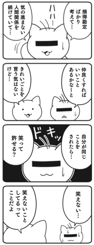 でも大抵は、「一緒にいるのにいいことが回ってこない」時に、少しずつボロが出ます。損得勘定で近づけば、バレた時に一気に信頼を失います。おそらく、期待していた利益より、損失の方が大きいと思います。「人を騙す人」と仲良くしたい人はいません。笑えない関係は続けない方がいいです。