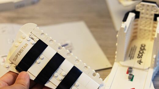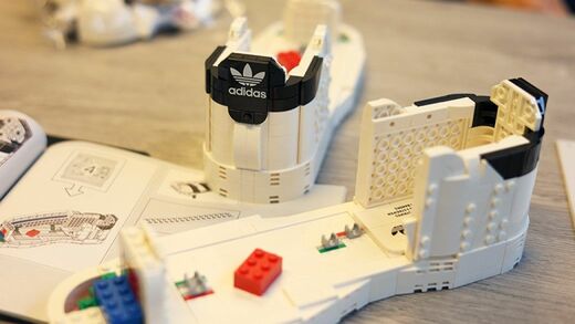 カーブを描いたブロックを、(例えは悪いが)人間の肋骨のように積み上げていけばヒールの出来上がり。アディダスのトレフォイルロゴにテンションも跳ね上がる。く〜、いいねいいね。スニーカーっぽくなってきたァ〜!