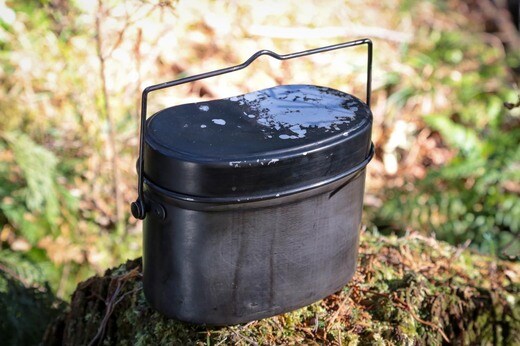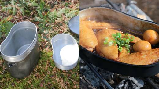 続いて飯盒(はんごう)に参りましょう。兵式飯盒は、数あるアウトドア調理グッズのなかでも強くオススメするアイテムです。