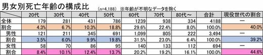 そして孤独死は、“高齢者”という先入観があるが、昨今は若年層の自死が増え、2020年11月に発表された、日本少額短期保険協会の「第5回孤独死現状レポート」では、いまや孤独死の平均年齢は61歳と比較的若く、高齢者ではない65歳未満の孤独死が4割になっていると発表している。もはや、高齢者の孤独死だけを問題視するのはナンセンスなようだ。