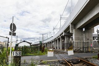 野田市駅から愛宕駅にかけての高架化は、線路こそ空中に持ち上がったが工事はまだ続く。つまりは地上にあった古い線路を引っ剥がして更地にする工事だ。線路が地上から空中に上がると、それまで地上にあった踏切は無用の長物になる。愛宕駅の近くにはそんな“廃踏切”も残っていて、こちらは鉄道ファンにとっての見どころ、というところだろうか。