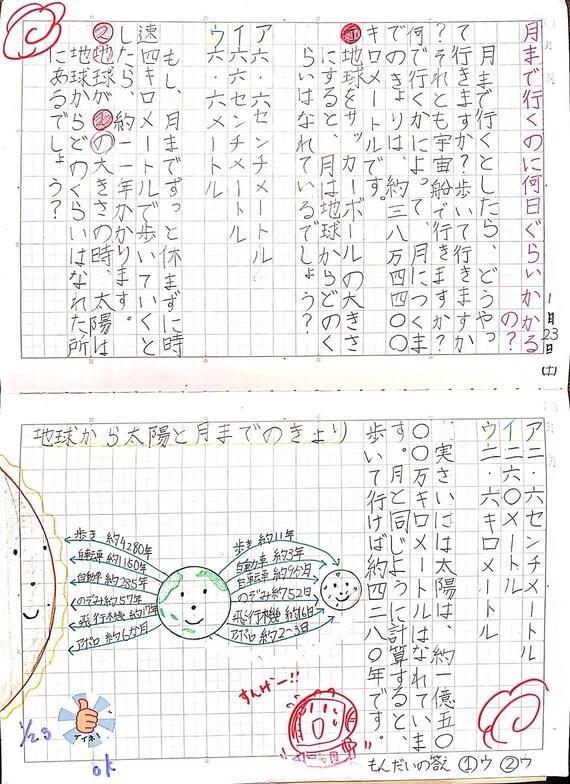 そのため、今だとやっている子はクラスの3分の2くらい。でも、出さない子も何もやっていないわけではなく、家庭で購入した問題集やタブレット端末で通信教材などに取り組んでいます。目的の1つである「家庭学習の習慣化」に当たり、自主学習の「かたち」はどのようなものでも構わないと考えています。