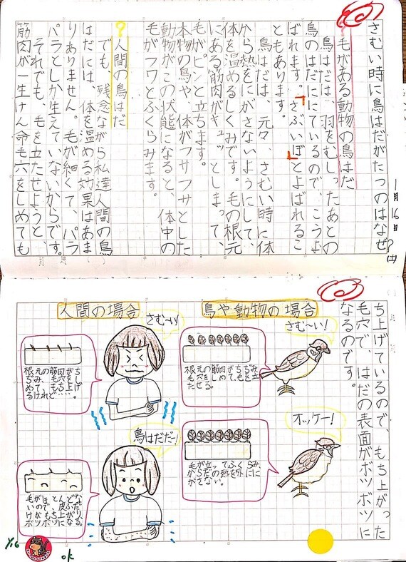 今のクラスでは、自主学習ノートに加え、1つのテーマをひたすら深掘りする「探究学習ノート」に挑戦する子もいて、すでに1冊終わった子が4人います。探究のテーマは、沖縄県、京都、猫、忍者、ポケモンなど、各自が好きなものや興味のあるもの。教員は教科学習と絡めたがりますが、楽しいものでいいのです。社会人になるとリポートを書いたりプレゼンテーションしたりする機会が増えますが、自由に探究する中でそういった将来必要な力が養われると考えています。