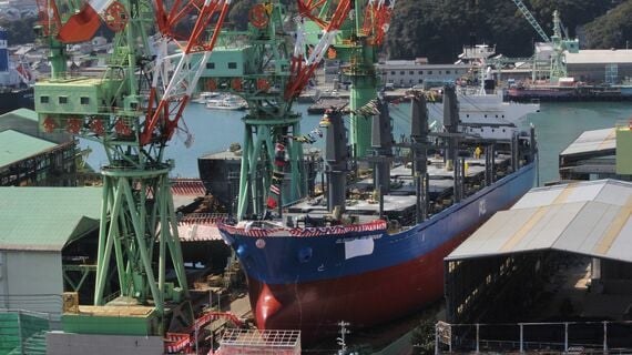 今治造船の手持ち工事量は7月時点で、適正水準とされる2年分を超え、2.5年分近くに積み上げている。業界2位のジャパン マリンユナイテッド(JMU)も同様に受注量を増やしており、業界にとっては久しぶりに明るい話題が続いている。
