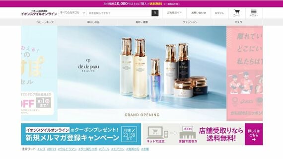 イオンのサイトで販売されている化粧品で商品単価が1万円を超えるのは、P&Gの「SK-Ⅱ」やコーセーの「インフィニティ」などと数少ない。販売されているブランドの多くは、カネボウ化粧品の「KATE」など単価が数百円から3000円程度の低~中価格帯だ。クレ・ド・ポー ボーテとの顧客層の乖離は否めない。