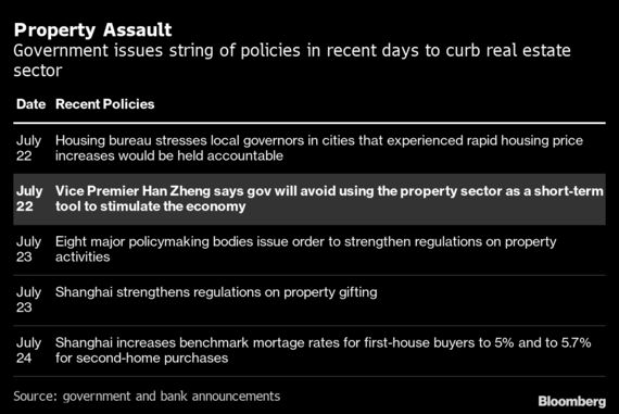 韓正副首相は習近平国家主席が述べた「住宅は住むためにあり、投機のためではない」との言葉を繰り返し、不動産セクターを景気刺激の短期的手段として用いるべきではないと指摘した。