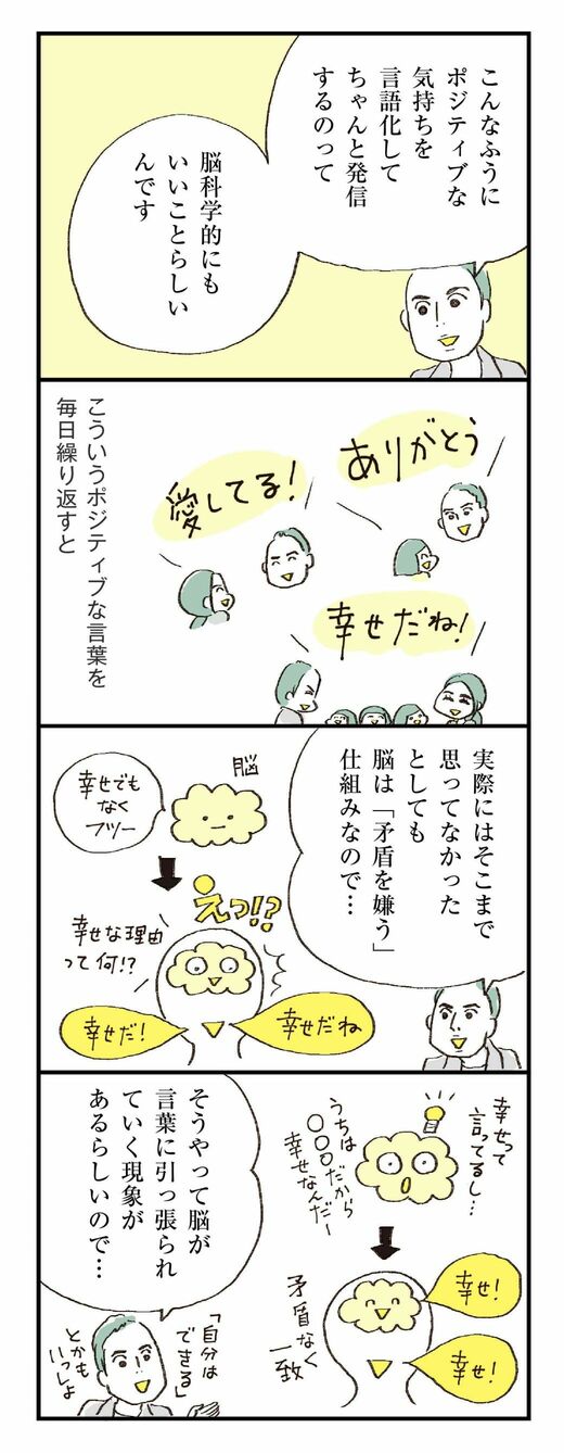 ライフ #ほしいのは「つかれない家族」 前の記事 次の記事 「妻は世界一」を態度で示す40代夫の凄すぎる習慣 頑張って「言語化」することの巨大なメリット 2分で読める 公開日時:2021/08/01 10:00 ハラユキ イラストレーター、コミックエッセイスト フォロー 1/9 PAGES 2/9 PAGES 3/9 PAGES 4/9 PAGES 5/9 PAGES 6/9 PAGES ポジティブな気持ちの言語化 次ページが続きます:【幸福度の高めかた】 7/9 PAGES 8/9 PAGES 9/9 PAGES