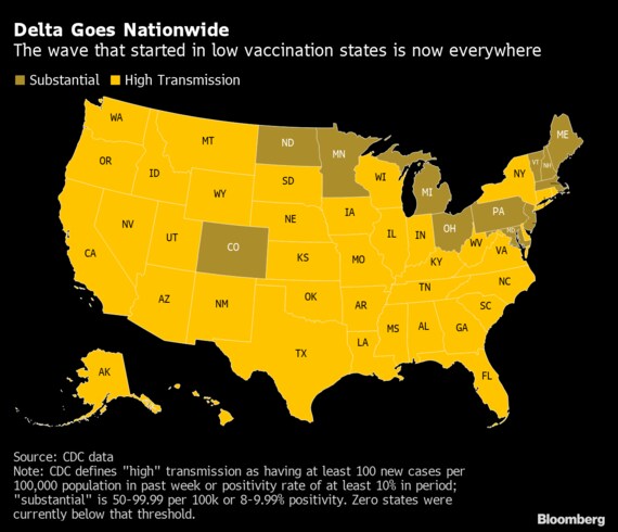 原題:Delta Wave Goes Coast-to-Coast in U.S., Showing Variant’s Force(抜粋)