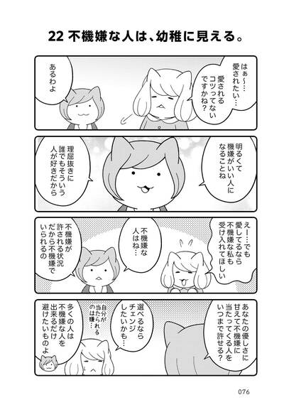 それに不機嫌な人は、どんなに仕事ができたとしても、幼稚に見えてしまいます。嫌なことをすぐに顔に出したり、少しのことで騒いだり、人のミスを非難したりする姿は、精神的な学習をしてこなかったのかとさえ思われるでしょう。「愛されたい」との思いで不機嫌な態度をとっていても、不機嫌な人は愛されず、信頼もされないのです。