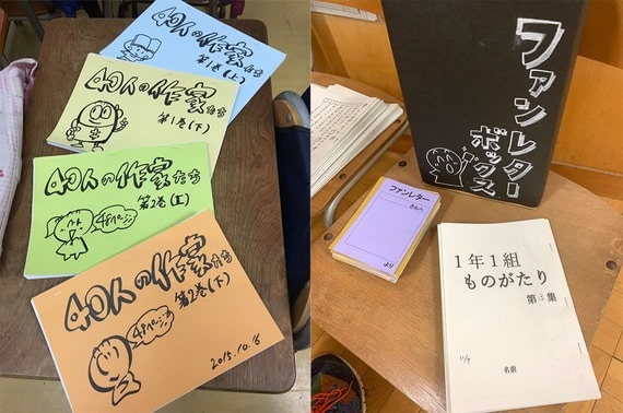 また、面白い作品を書いた友達に「ファンレター」を書いて送るという活動も行います。保護者の方にもお願いしているのですが、皆さんたくさん書いてくれますね。子どもは先生や友達からフィードバックをもらうことはあっても、友達の親から手紙をもらう経験はないので、すごく刺激になるようです。全国に「作家の時間」に取り組んでいる先生がいるので、ほかの学校や学年のクラスと出版物を交換してファンレターを送り合ったりするのもおすすめです。