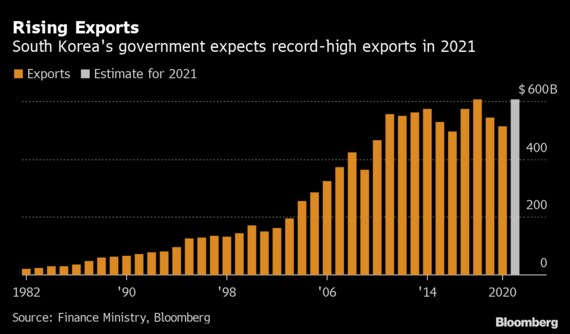 世界貿易を占う指標として、韓国の輸出に勝るものはほとんどない。世界的なテクノロジーブームを追い風に、コロナ禍が始まってから半導体や充電式電池といった韓国の輸出は急増した。半導体の需要はなお旺盛だが、HSBCのエコノミストは「電子機器のピーク」は過ぎた可能性があるとみている。