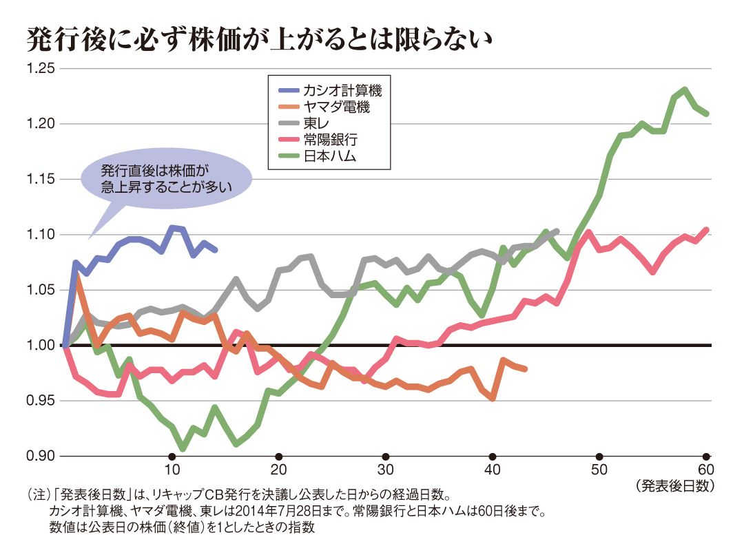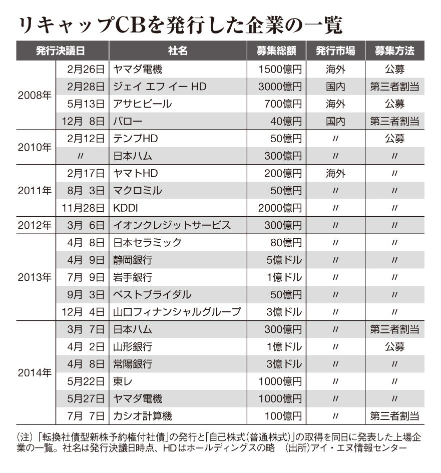 「リキャップCB」なる財務手法が今、市場で注目を集めている。転換社債型新株予約権付社債(CB)を発行し、資金を調達すると同時に、自己株式を取得する企業が増えているのだ。CB発行で負債を増やす一方、自社株買いで資本を減らす。つまり、リキャピタライゼーション(負債・資本の再構築)を行うことから、そう呼ばれている。
