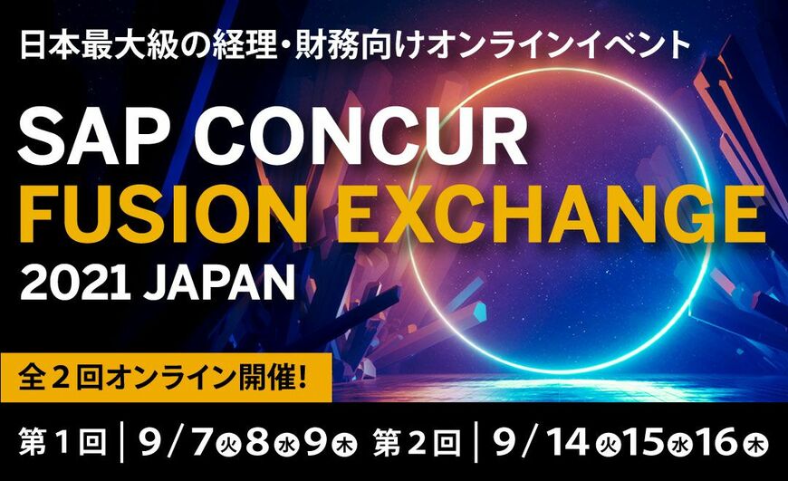 ⇒【参加費無料】日本最大級の経理・財務向けオンラインイベント「SAP CONCUR FUSION EXCHANGE 2021 JAPAN」 詳しくはこちら