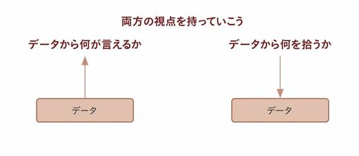 多くの場合、データから何が言えるかを考えます。これはこれで非常に大切な行為なのです。ただ、気をつけないと、データに解釈を与えることが目的化してしまう可能性があります。また、データがあればあるだけ、データに引っ張られてしまうという弊害もあります。データが大量にある場合は、すべてを考慮にいれることはできません。