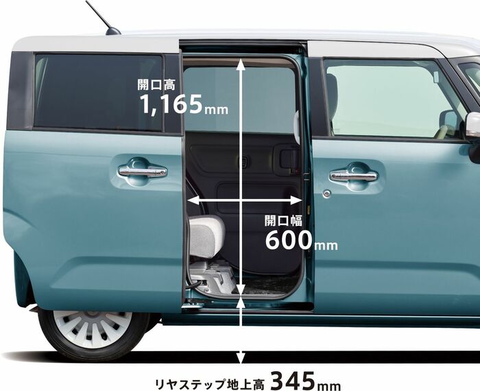 また、室内高を従来のワゴンRより65mm拡大し、後席には600mmの開口幅と345mmのリヤステップ地上高のスライドドアを採用するなど、乗降性が追求されている。