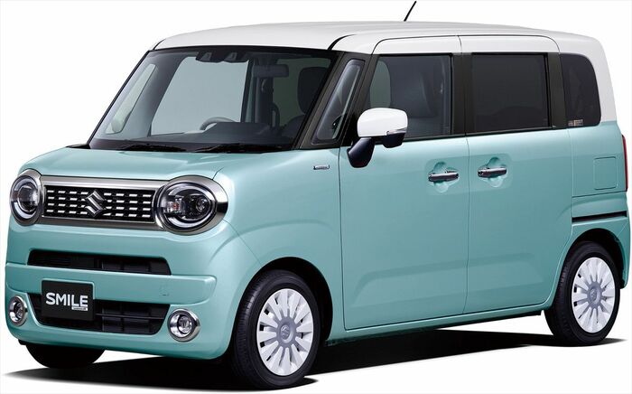 そこでスズキは、ワゴンRスマイルのデザインテーマを「わたしらしく乗れるスライドドアワゴン『マイスタイル マイワゴン』」に設定。エクステリアは四角いボディフォルムに丸目ヘッドランプを組み合わせることにより、シンプルで可愛らしい印象のデザインとした。