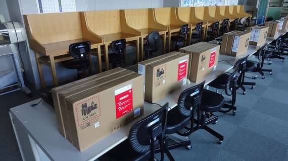 とはいえ、ただ届けるだけでは学校は混乱する。そこで、段ボールや保証書はどうするかといった細かな情報も伝え、各学校に協力を依頼したという。さらに、箱を開けてからネットにつなぐまでの手順を示したPDFを教員向けに配布。教員が教室の大型ディスプレーにPDFを映しながら説明し、児童・生徒が自分で設定していくという段取りだ。