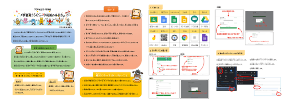 端末でできることや使い方、そのルール、自宅でネットにつなぐ方法などを記した「学習用コンピュータ利用の手引き」
