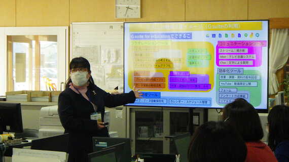 「八戸市では以前からICT環境の整備を行ってきましたが、苦手意識を持っている先生もいます。そこで、導入半年前の20年5月から研修を繰り返し行いました。実際にChromebookを触ってもらうことで、先生方もちょっと安心してくださったようです。また、新しいツールを導入する際、多くの先生が不安に感じるのは『今までのやり方を変えなければいけないのでは』ということ。そうではなくて、『これまでの指導スタイルの中でデジタルに置き換えたほうが便利なら取り入れてみましょう』ということをポイントにお話ししてきました」