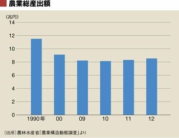 人気ゲーム「信長の野望」をプレイする人は最初に何をするだろうか。いきなり他国へ合戦を仕掛ける前にまずは農地開発で石高を上げて国力を高めているはずだ。日本国の「石高」に当たる農業総産出額は、1984年の11兆7000億円をピークに長期的には減少傾向(2012年は8兆5251億円で前年比微増)。このまま高齢化と後継者不足が進めば厳しいことは誰でも分かる。