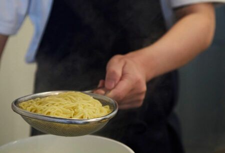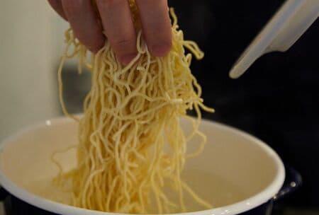 中華そばはよくほぐしながら茹でましょう(写真:吉澤健太)