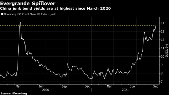 信用市場の圧力は低格付けの不動産会社から、より大手の同業や銀行へと広がっている。今年6月までの1年3カ月で中国の株式・債券を計5270億ドル(約58兆円)購入した世界の投資家はこうした資産を手放し始めている。