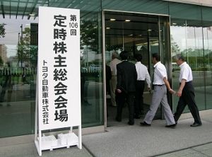 トヨタ自動車は24日午前、愛知県豊田市の本社で株主総会を開催した。就任後初めて議長を務めた豊田章男社長は、冒頭で昨年秋からのリコールなど一連の品質問題について陳謝。代表権を持つ取締役が月額報酬の一部を返納していること、役員賞与は前期に引き続きゼロとすることを説明した。役員報酬の水準や決定方法について、株主からの質問はなかった。