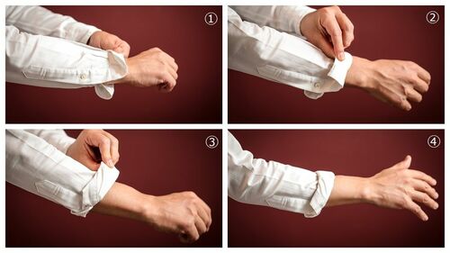 写真上:イタリア直輸入、かっこいい腕のまくり方